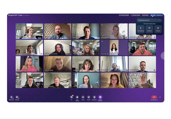 • Отключение микрофонов и камер сразу всем или отдельным участникам